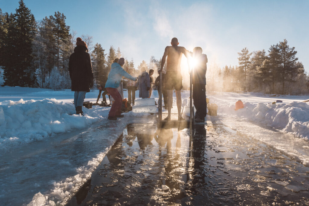 IJszwemmen in een meer met een ijswak: Ervaar de ultieme koude beleving in een veilig en gecontroleerd milieu.